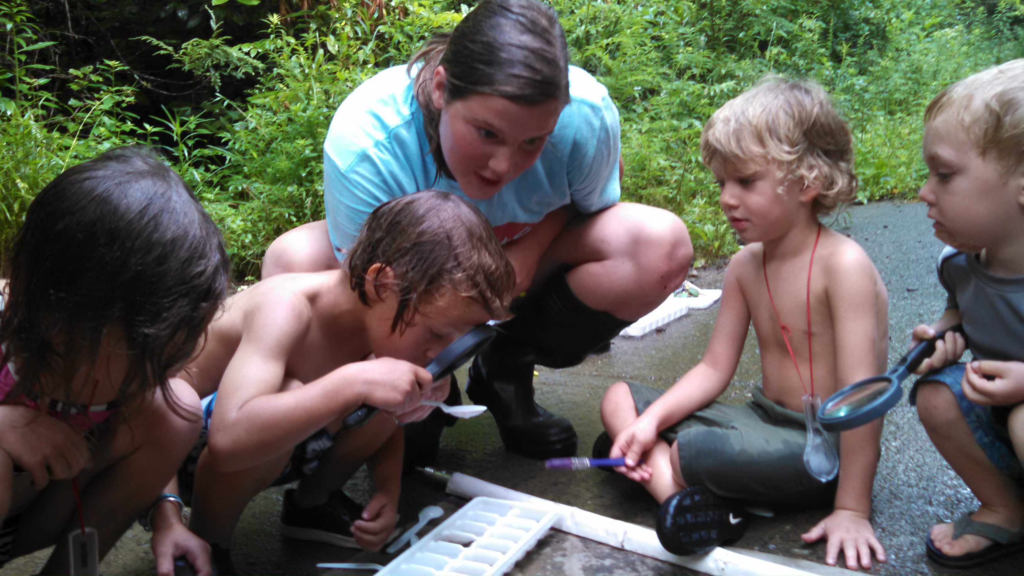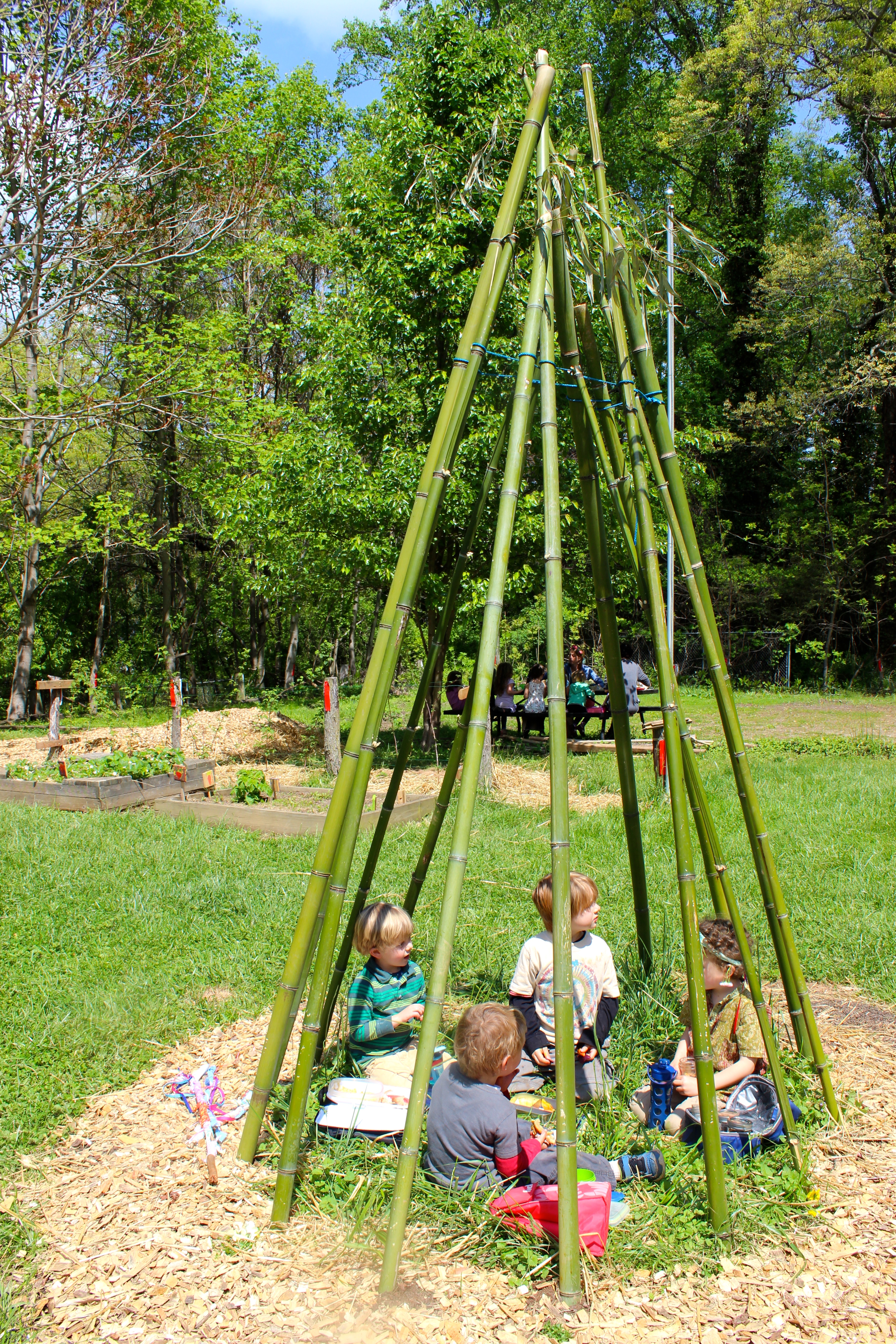 During the week, the children worked together to create their own lean-to fort. We also made lots of fun crafts. Sit upons to keep us dry, mobiles made from nature, mud paintings, and our own bark boats, which we sailed together down the creek. Our week ended with roasting hotdogs and marshmallows over the fire!