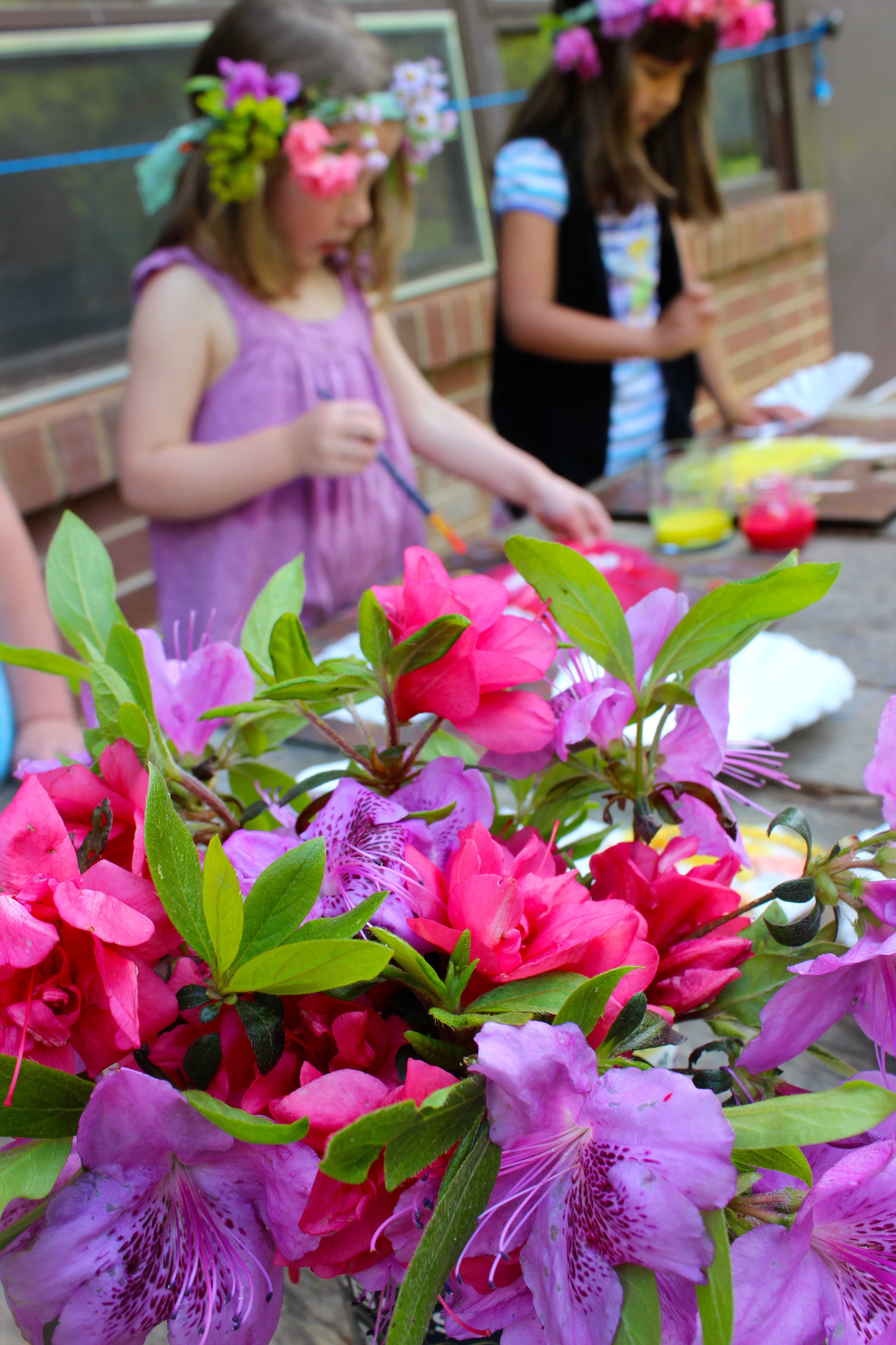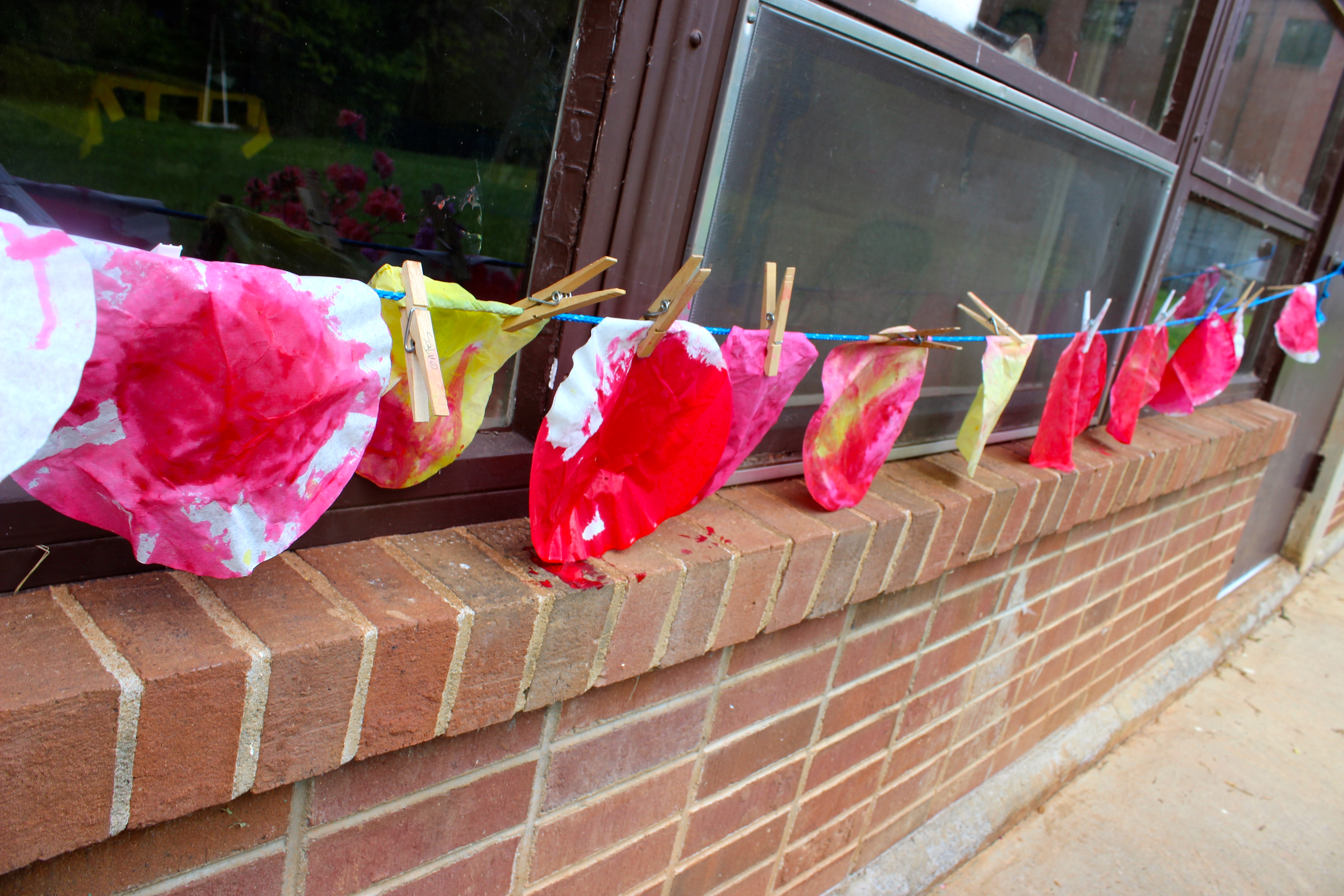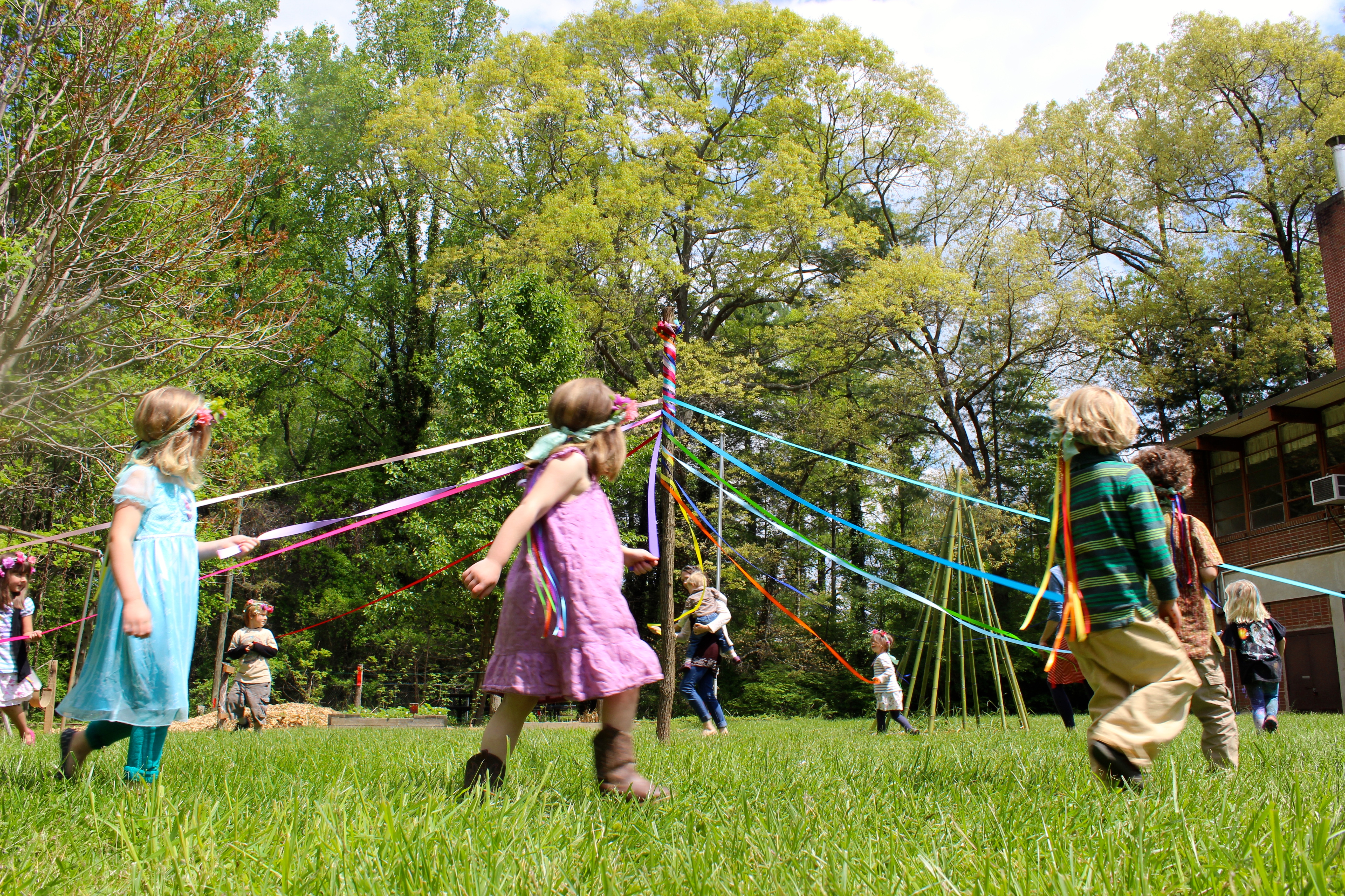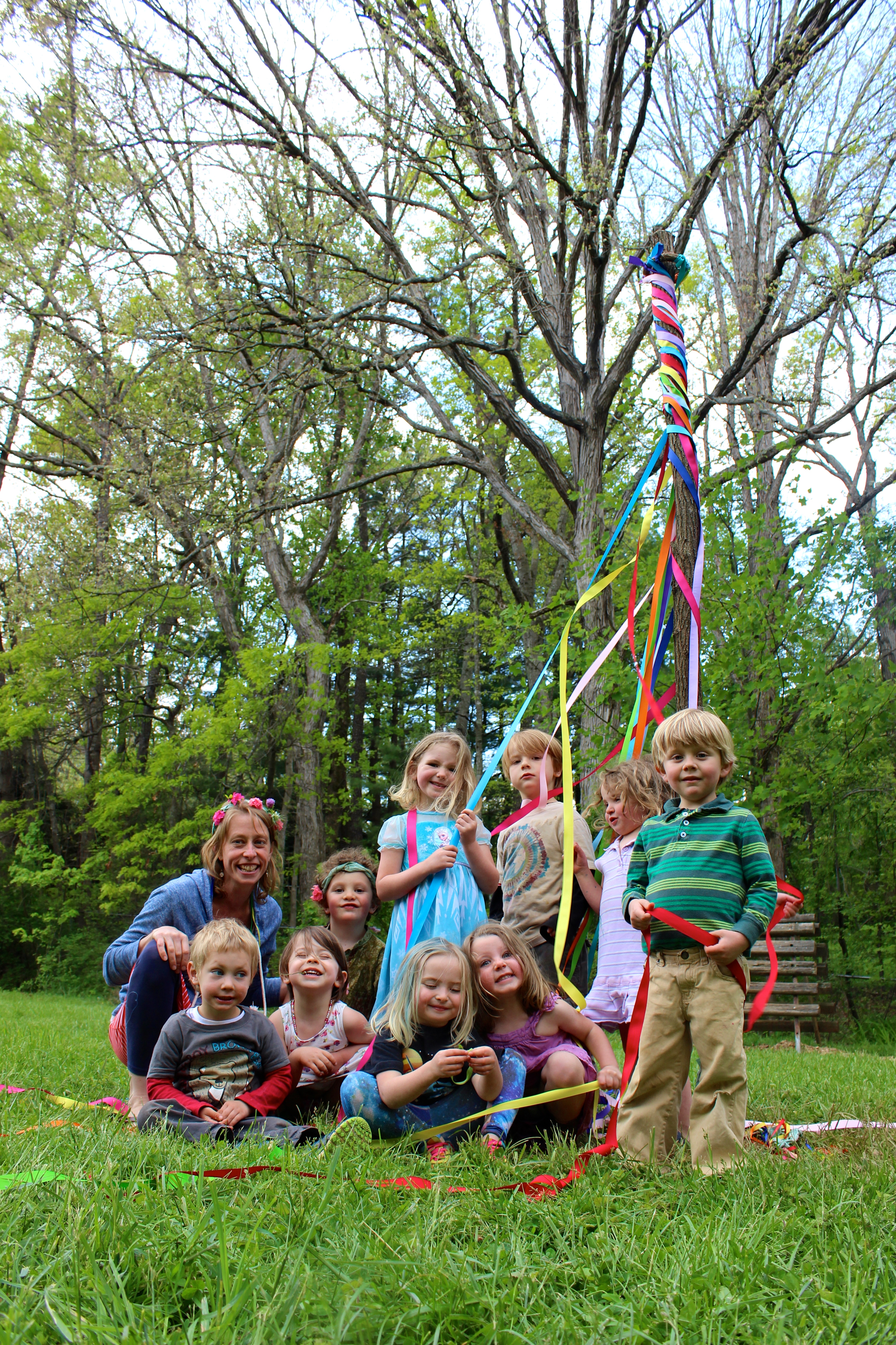 We celebrated May Day this week with a traditional May pole dance, flower crowns and a picnic lunch. The children also painted coffee filters which were turned into clothespin butterflies and wrapped ribbons onto fairy sticks. Children and parents alike painted a canvas which will become our new classroom flag. It was a gorgeous day!