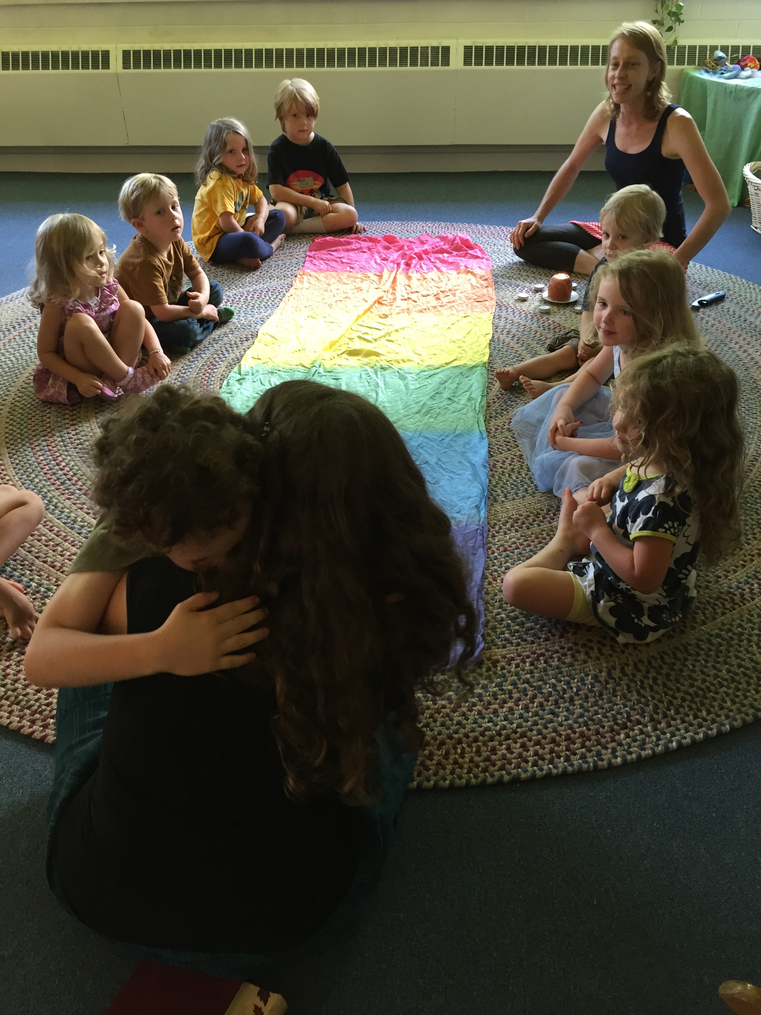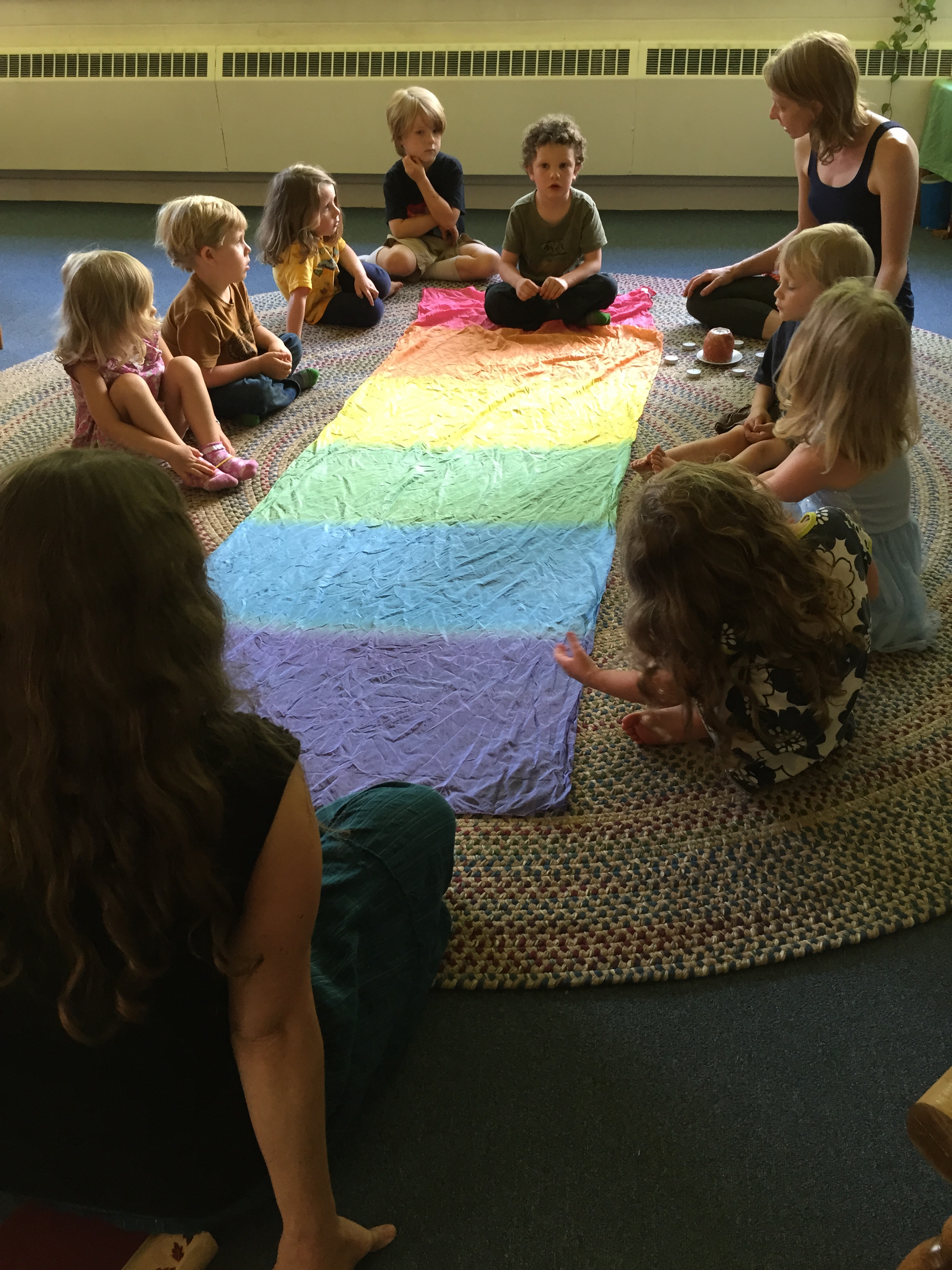Today four of our students crossed the bridge on their way to begin Kindergarten next year. It was a bittersweet moment but our Ms. Katy made it so special by presenting each child with a small stone which she felt embodied their best properties. After the ceremony was over we all gathered outside and had a delicious potluck lunch with all of the families. The weather was beautiful and offered the perfect send off into summer. Until next fall, we wish you well!