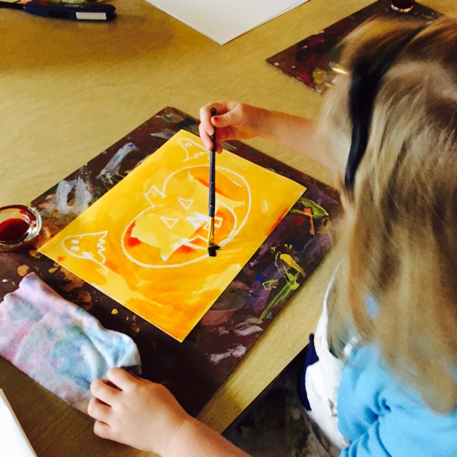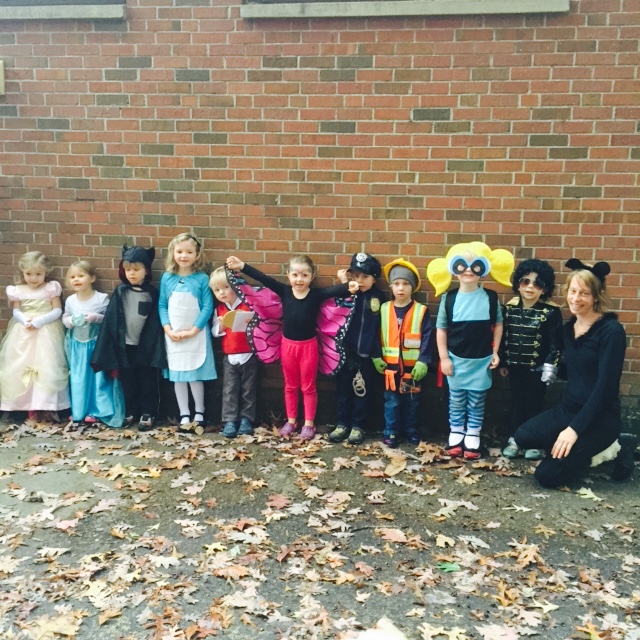We love Halloween at Grow With Me! Not only is it fun to dress up, but it means that Autumn has settled in over our mountains and the ground is covered in leaves of many colors just waiting to be raked into a huge pile at the bottom of our slide. The last day of school before Halloween all the kids (and Ms. Katy!) dressed up in their costumes for the day. Everyone looked so great! Since it was Thursday, which is our painting day, everyone settled in at their places at the table. But, Ms. Katy had a surprise! As the children began to paint on their papers a special Halloween picture appeared! Our snack was in theme, too, with clementines made to look like pumpkins and each child was given a peeled banana half which they could decorate with little chocolate chips to make it look like a ghost. At the end of our day, Ms. Katy told the story about how the farmer decided to carve his pumpkin to scare off the hobgoblin from playing tricks on cows. It was a fun day filled with merriment and laughter. We hope your Halloween is just as joyous!