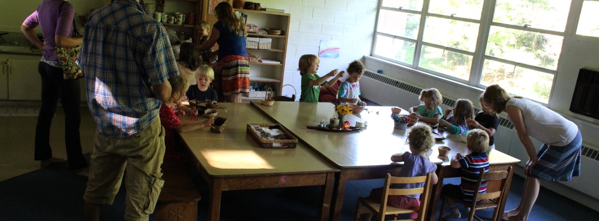 Our gathering table is where arts and crafts are created and meals are blessed and shared together. Our kitchen table is where snacks are made with hands big and small. Our circle rug is where we gather to sing songs, tell stories, and share.